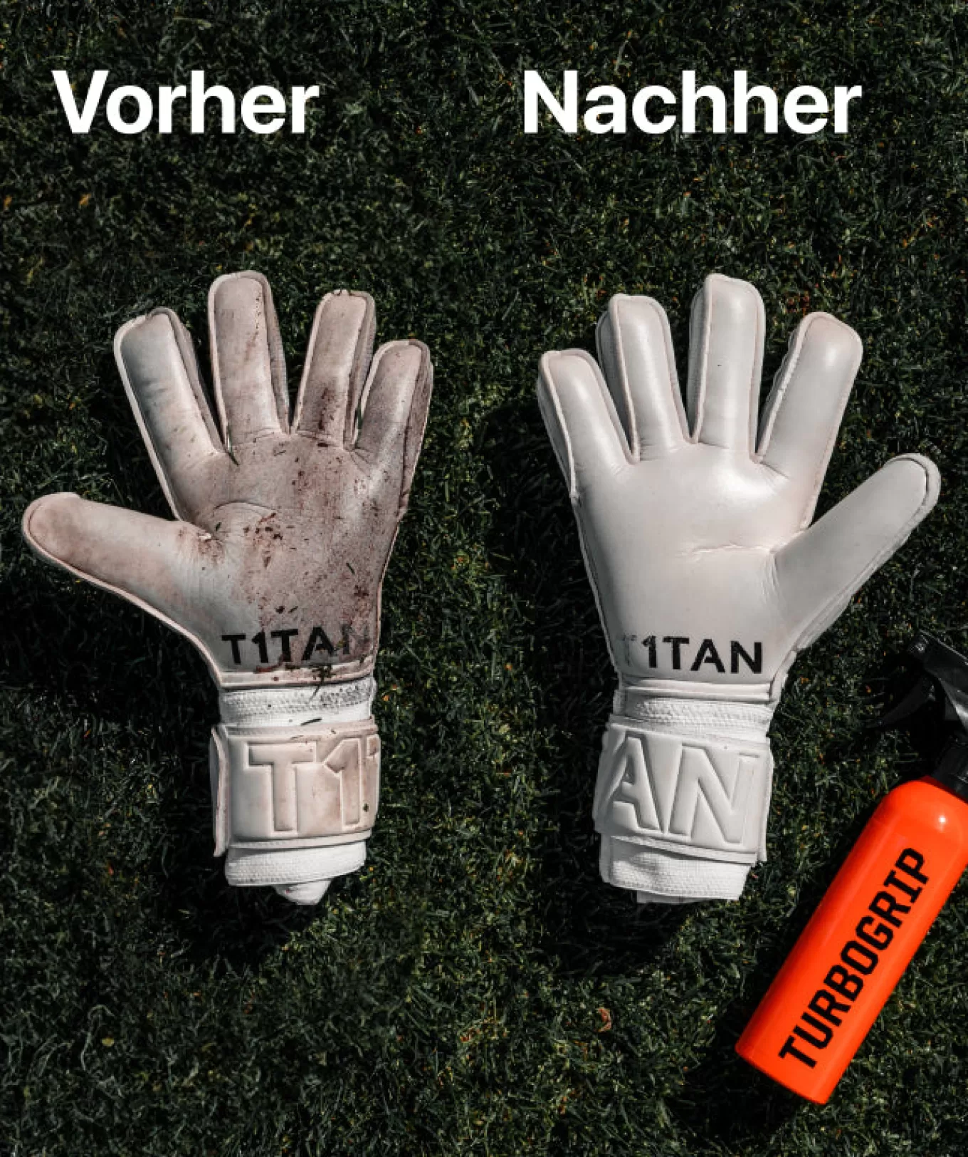 - TURBOGRIP. Der hochkonzentrierte Flüssig-Reiniger aus dem T1TAN Labor macht deine schmutzigen Handschuhe so sauber als wären sie neu! Einfach nach dem Einsatz auf beide Handflächen 3-4 x einsprühen und mit etwas Wasser kräftig im Haftschaum einreiben. Danach so lange unter fließendem Wasser auswaschen, bis sich kein Schaum mehr bildet.